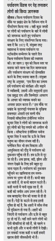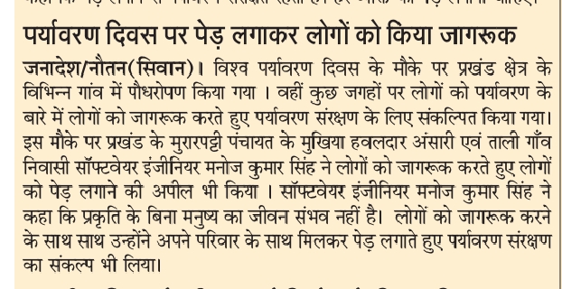 आज के प्रमुख समाचार पत्रों में! पर्यावरण दिवस !!?