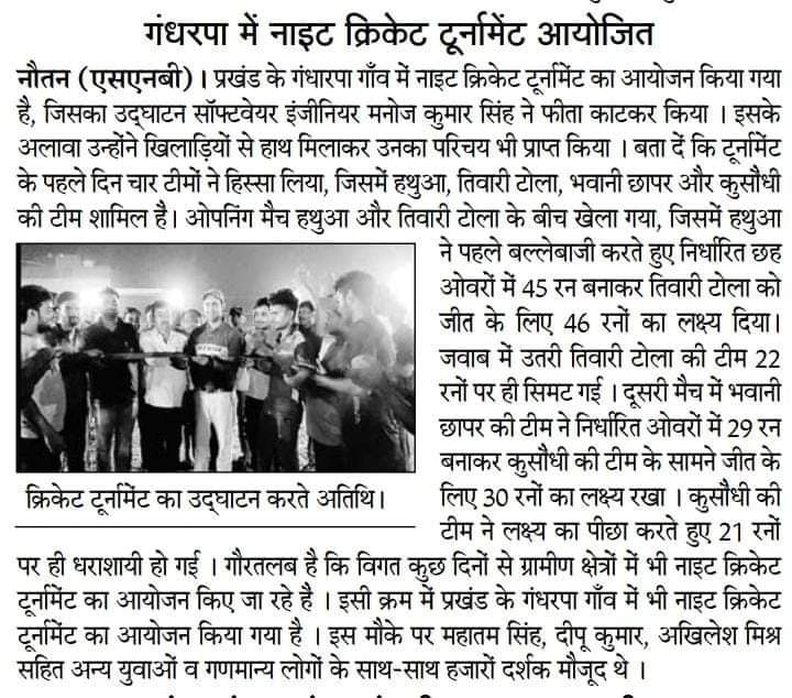 गंधरपा में नाईट क्रिकेट टूर्नामेंट आयोजित