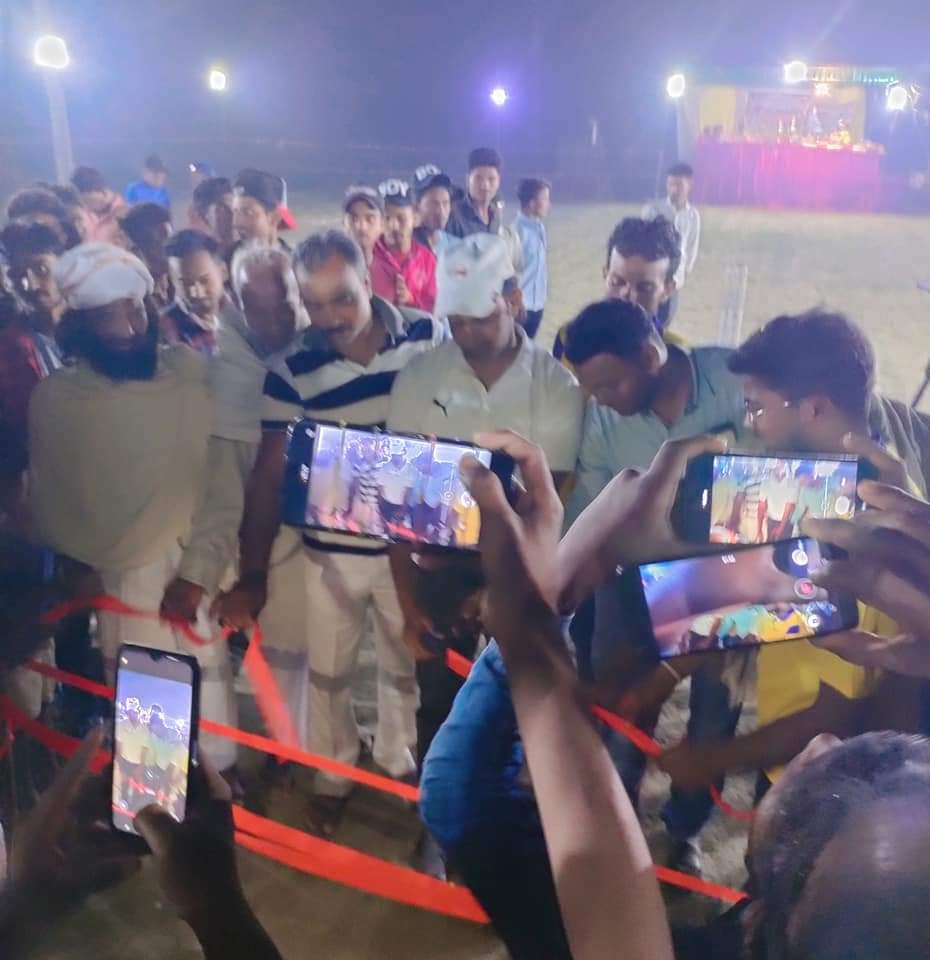 तिवारी टोला नाईट क्रिकेट टूर्नामेंट का उद्घाटन करते हुए।
